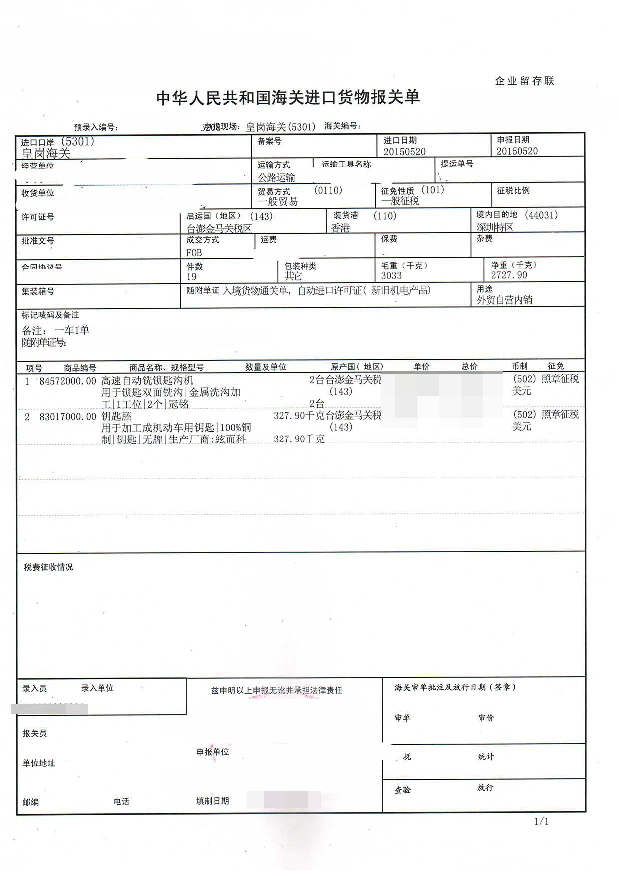 - 高速自動銑鎖匙溝機進口報關手續(xù)及案例【進口知識】