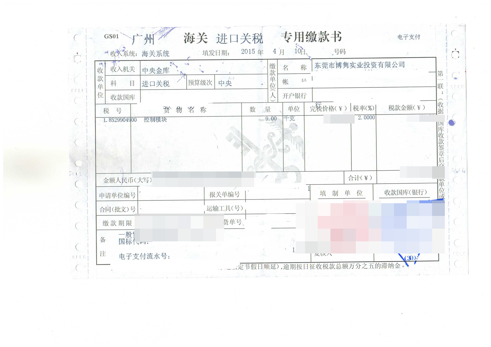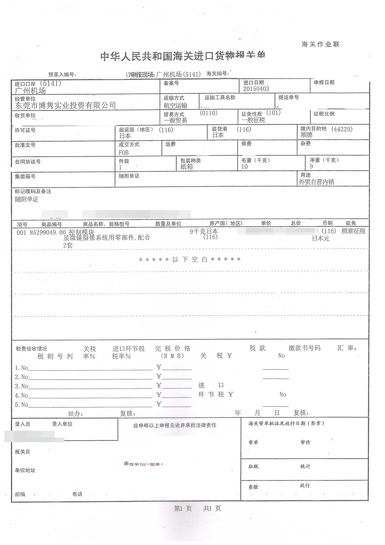 三、控制模塊進口報關(guān)案例展示