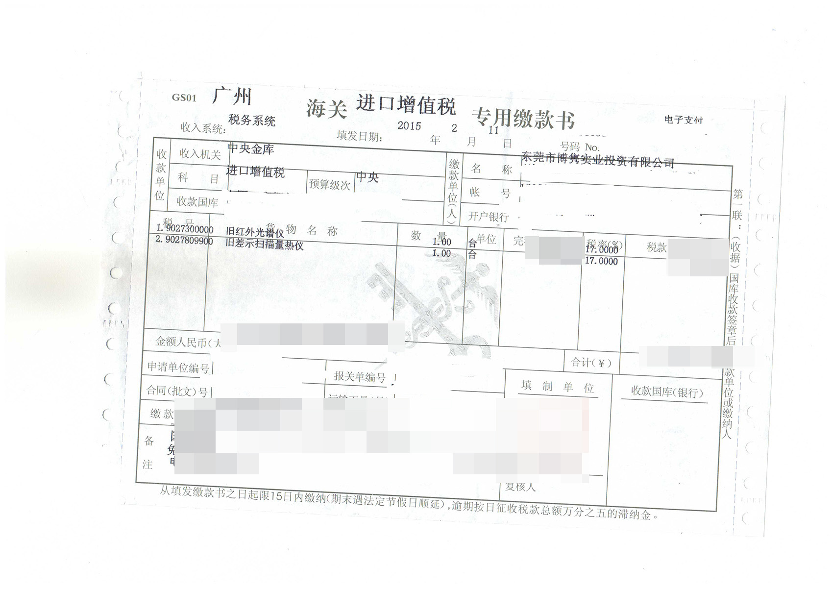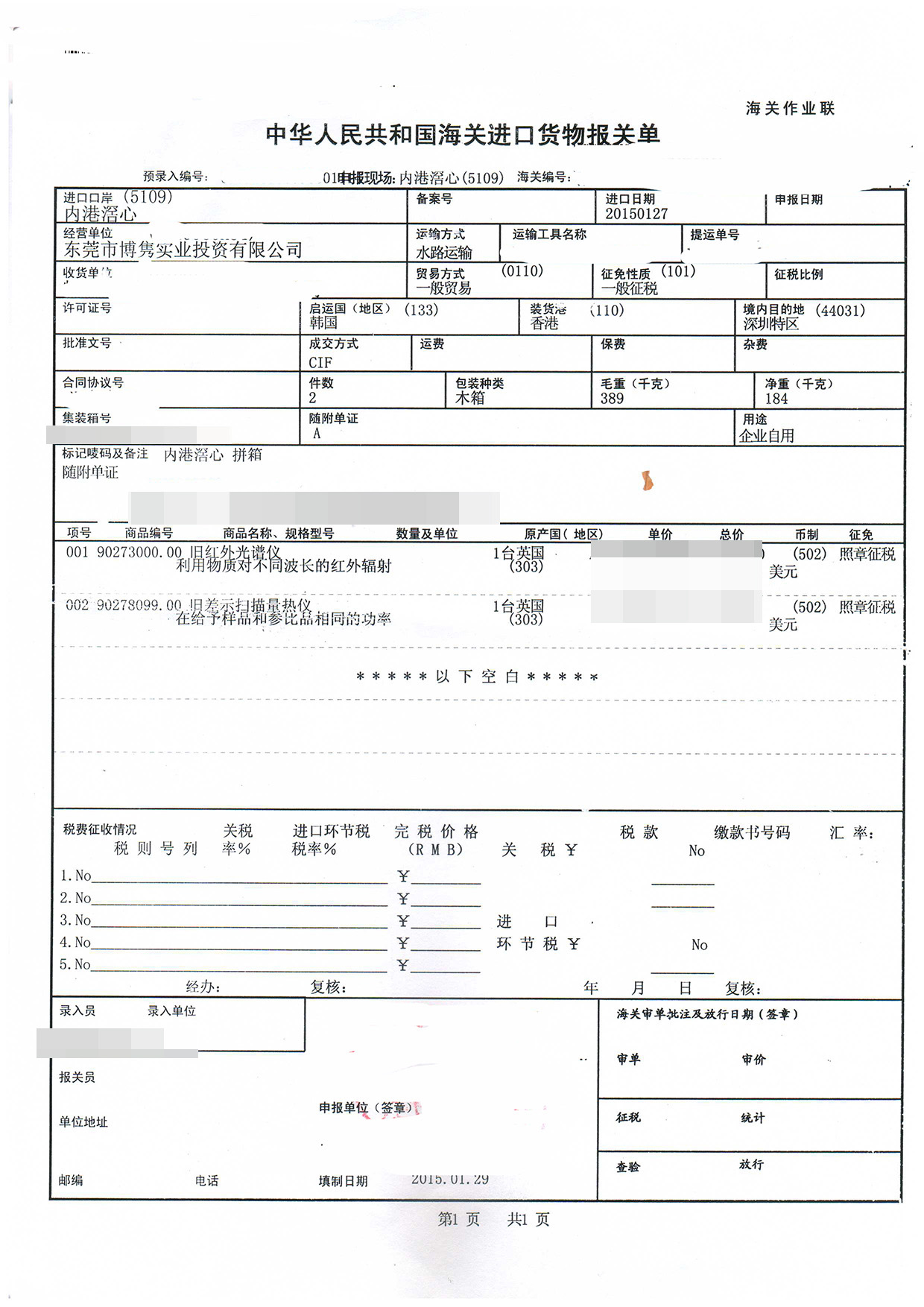 一、二手舊紅外光譜儀進(jìn)口報(bào)關(guān)手續(xù)資料