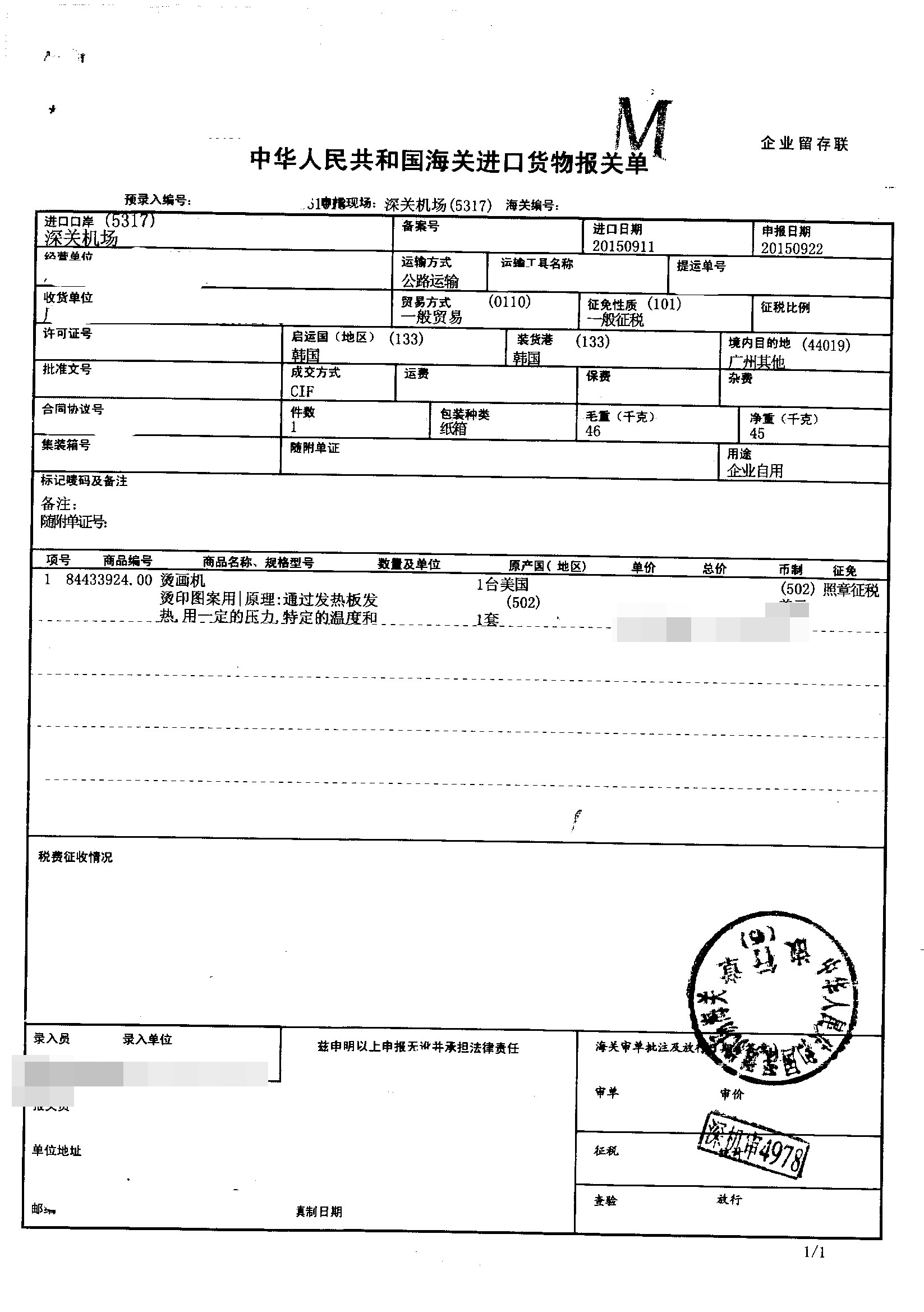 進(jìn)口日期:20150911
