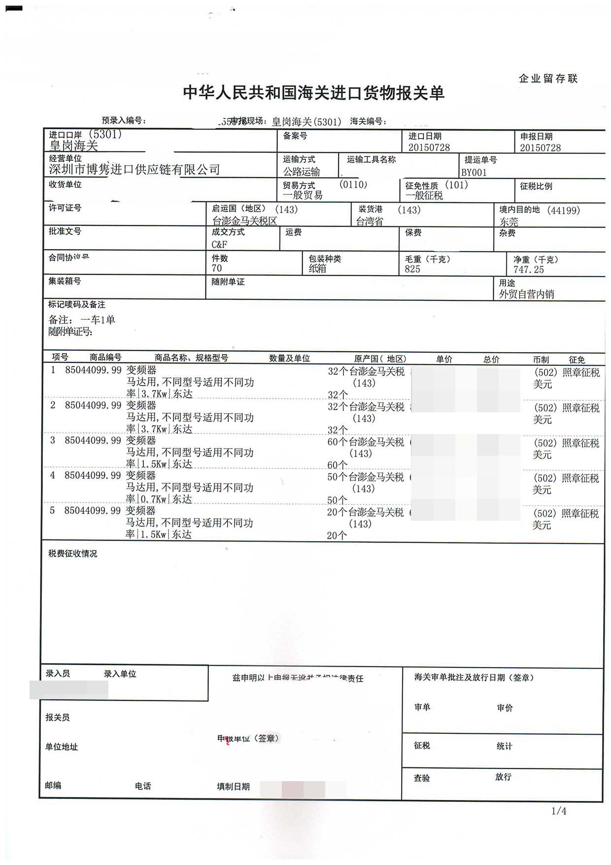 三、變頻器進(jìn)口報(bào)關(guān)案例展示