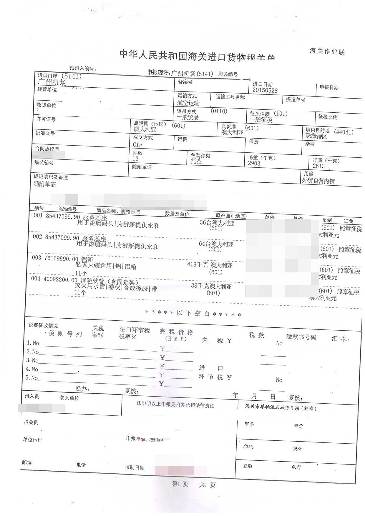 三、服務(wù)基座進(jìn)口報關(guān)案例展示