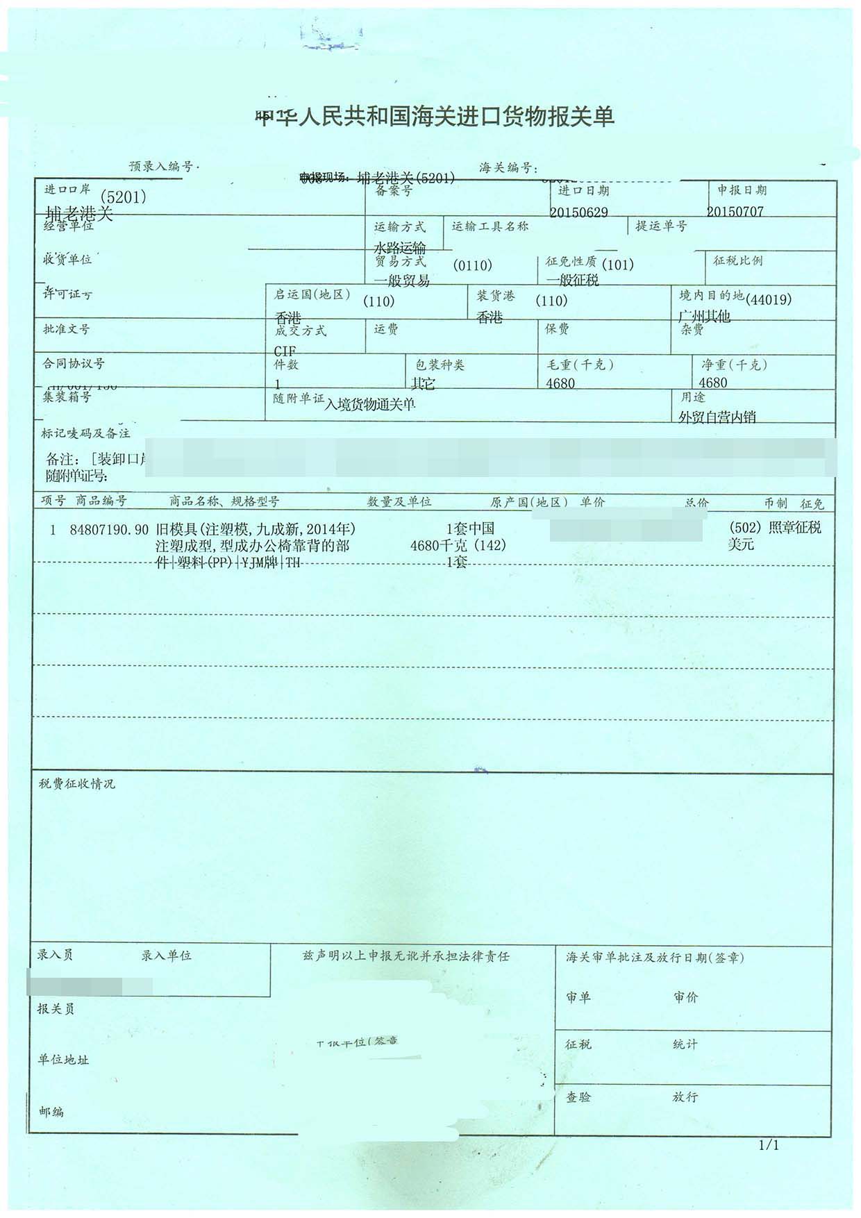 四、舊模具進口報關(guān)案例展示