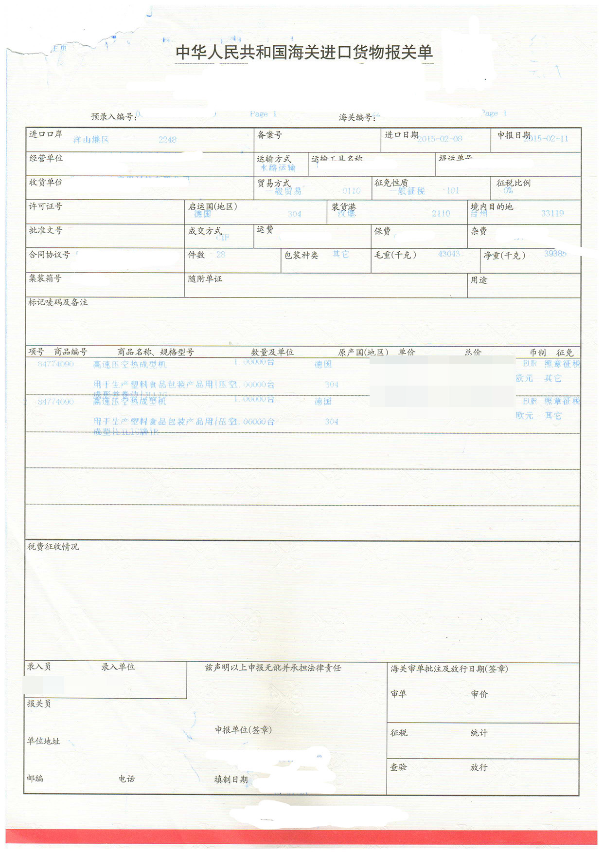 一、熱成型機進(jìn)口報關(guān)手續(xù)