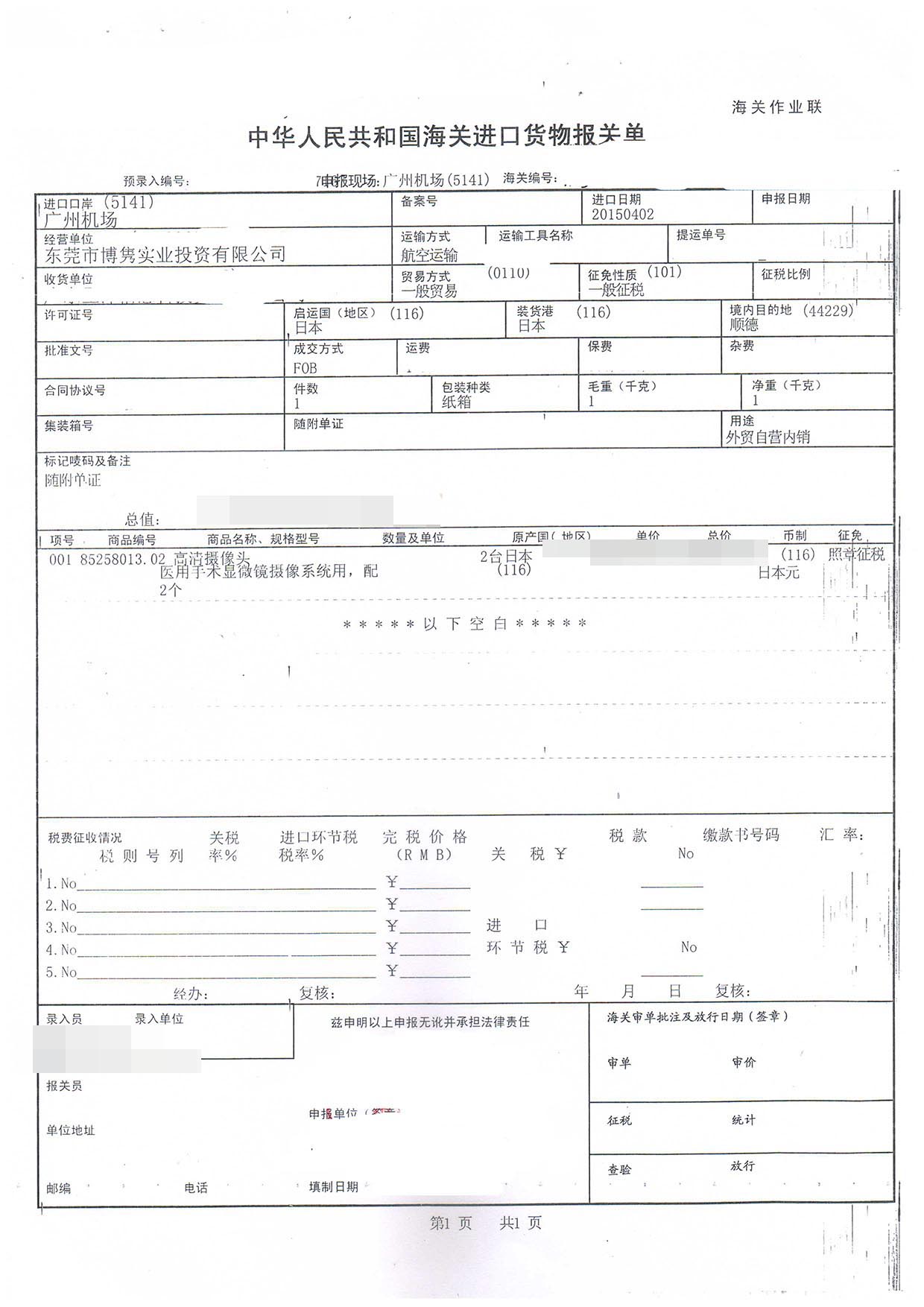 一、高清攝像頭進(jìn)口報(bào)關(guān)手續(xù)資料