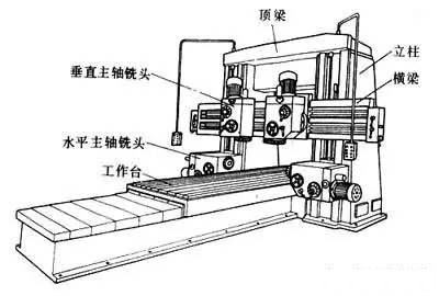 龍門式的特點是床身水平布置,刀具裝在橫梁上或立柱上,由左右兩立柱(或墻體)和連接梁(或橫梁)構(gòu)成一個門架(即所謂的“龍門”)。