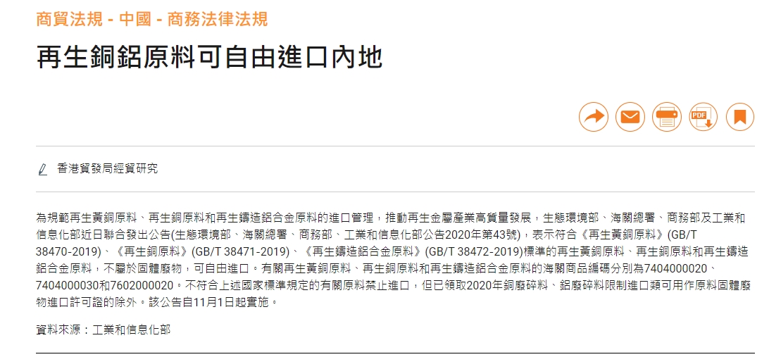 - 香港再生銅鋁原料可自由進(jìn)口到大陸